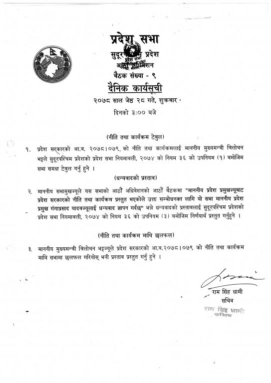 सुदूरपश्चिम प्रदेश, प्रदेश सभा सचिवालय.