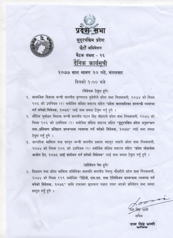 सुदूरपश्चिम प्रदेश, प्रदेश सभा सचिवालय.