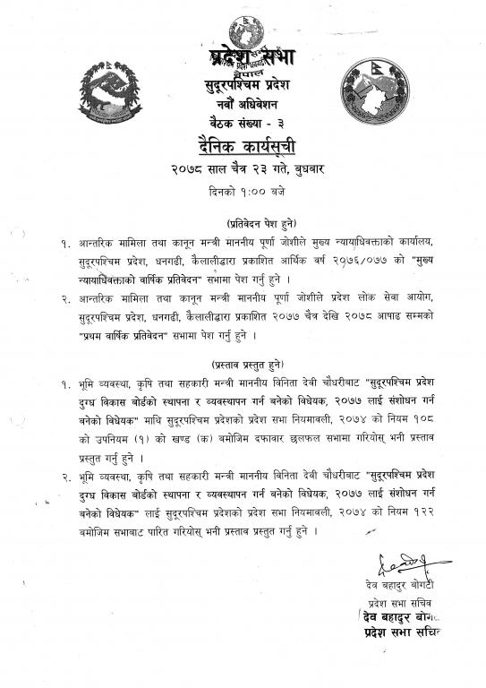 सुदूरपश्चिम प्रदेश, प्रदेश सभा सचिवालय.