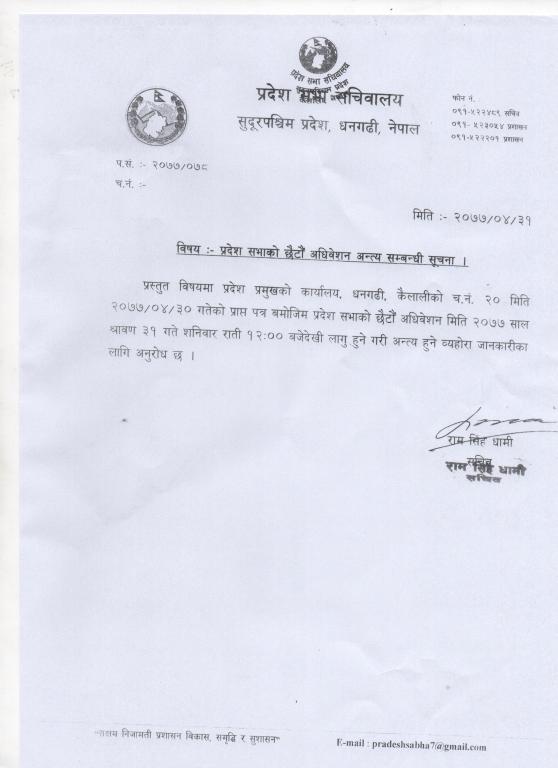 प्रदेश सभाको छैटौँ अधिवेशन अन्त्य सम्बन्धी सूचना