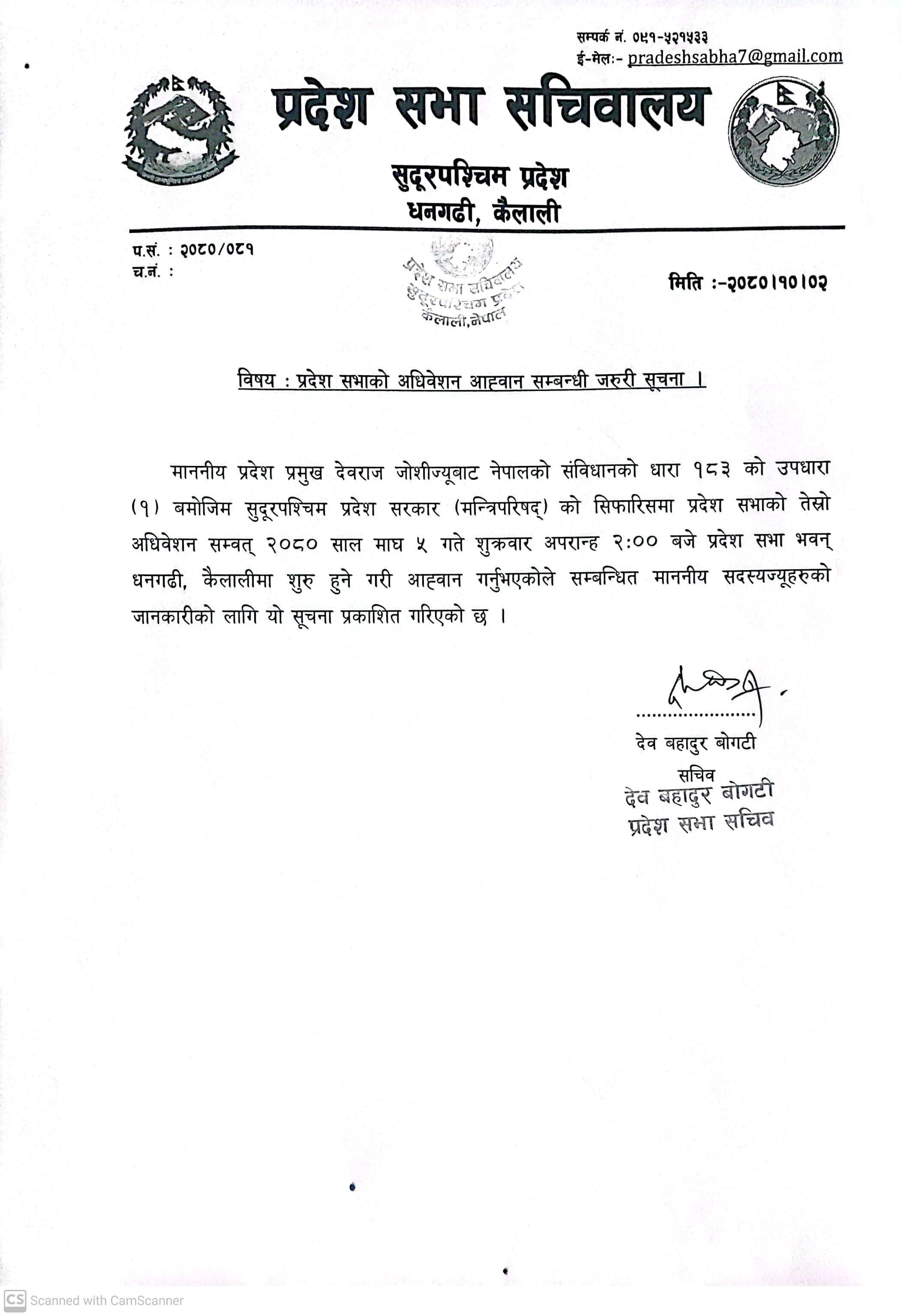 सुदूरपश्चिम प्रदेश, प्रदेश सभा सचिवालय.