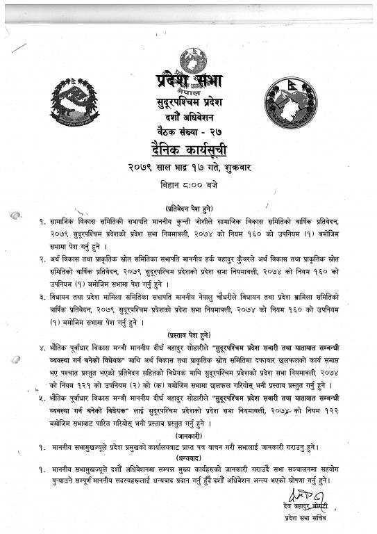 सुदूरपश्चिम प्रदेश, प्रदेश सभा सचिवालय.