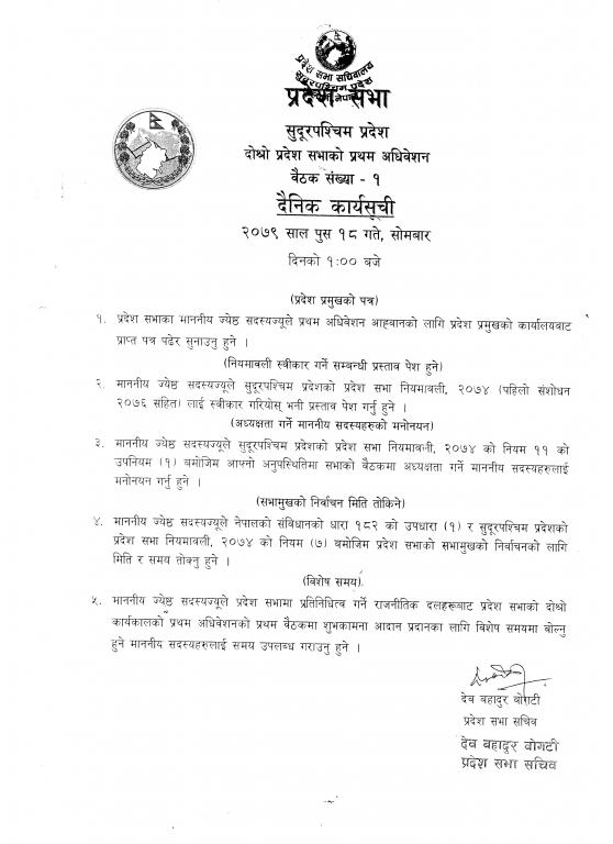 सुदूरपश्चिम प्रदेश, प्रदेश सभा सचिवालय.