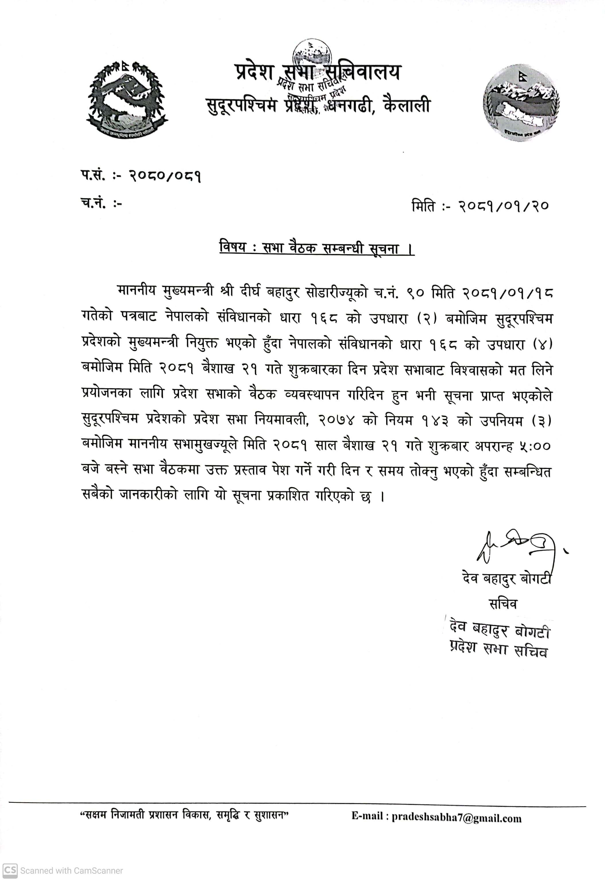सुदूरपश्चिम प्रदेश, प्रदेश सभा सचिवालय.