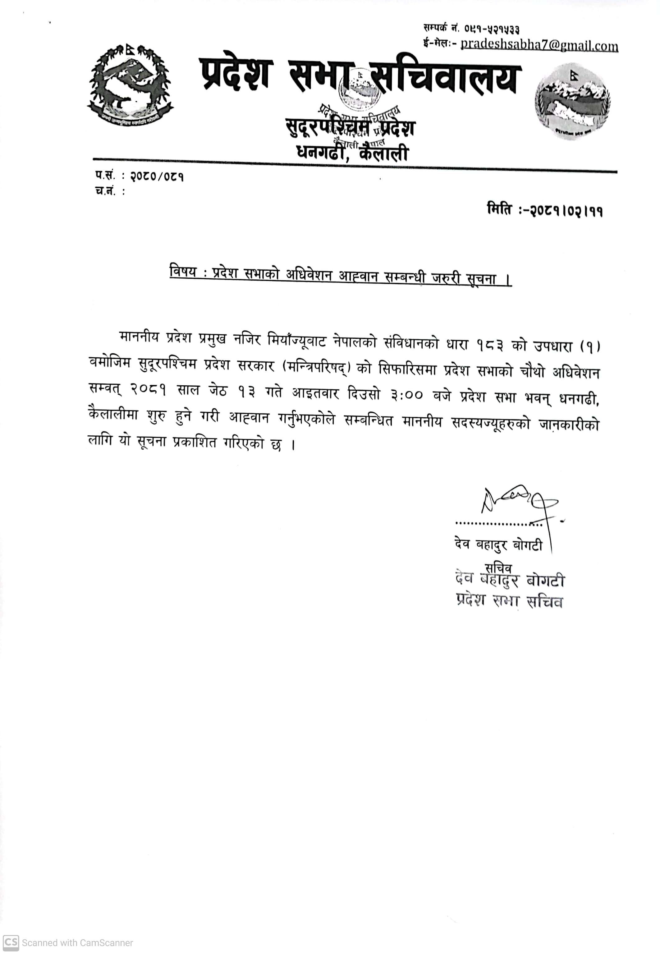 सुदूरपश्चिम प्रदेश सभाको चौथो अधिवेशन आव्हान सम्बन्धी सूचना