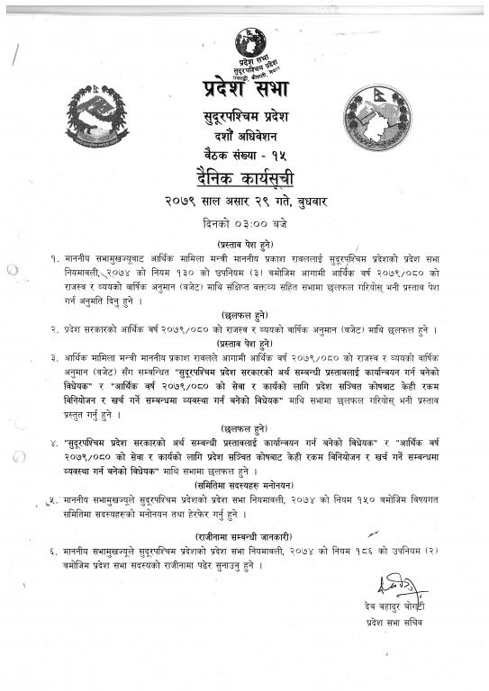 सुदूरपश्चिम प्रदेश, प्रदेश सभा सचिवालय.