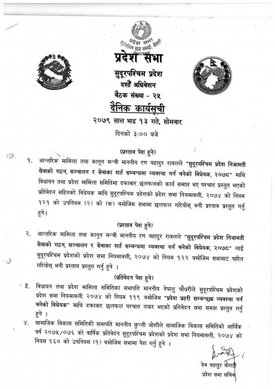सुदूरपश्चिम प्रदेश, प्रदेश सभा सचिवालय.